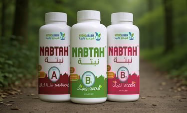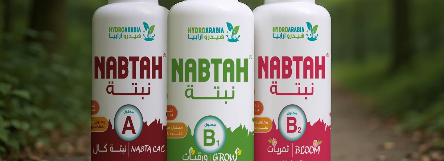 A Saudi-made plant fertilizer product for use in hydroponics. Graphicgy design for the logo and packaging.
